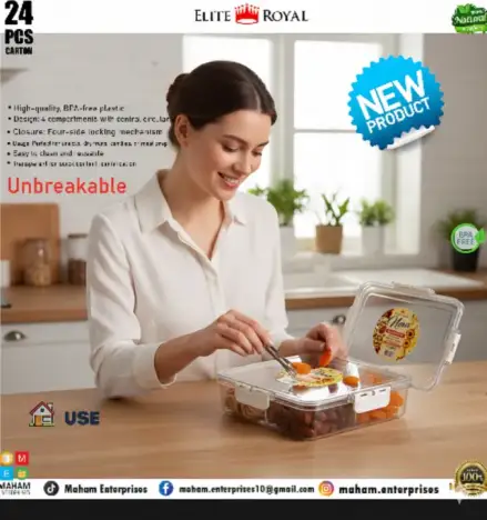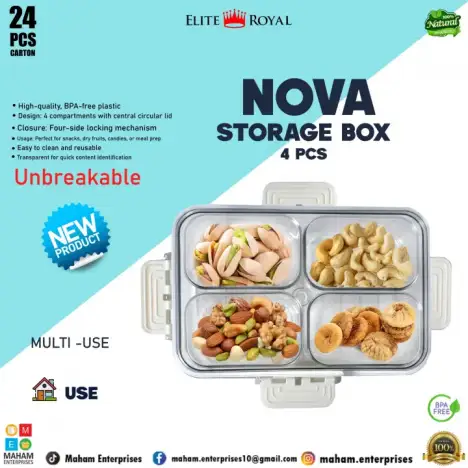 Upgrade your kitchen organization with the Nova Premium 4-Compartment Airtight Storage Box from the Elite Royal Series — a perfect blend of durability, style, and smart food storage.