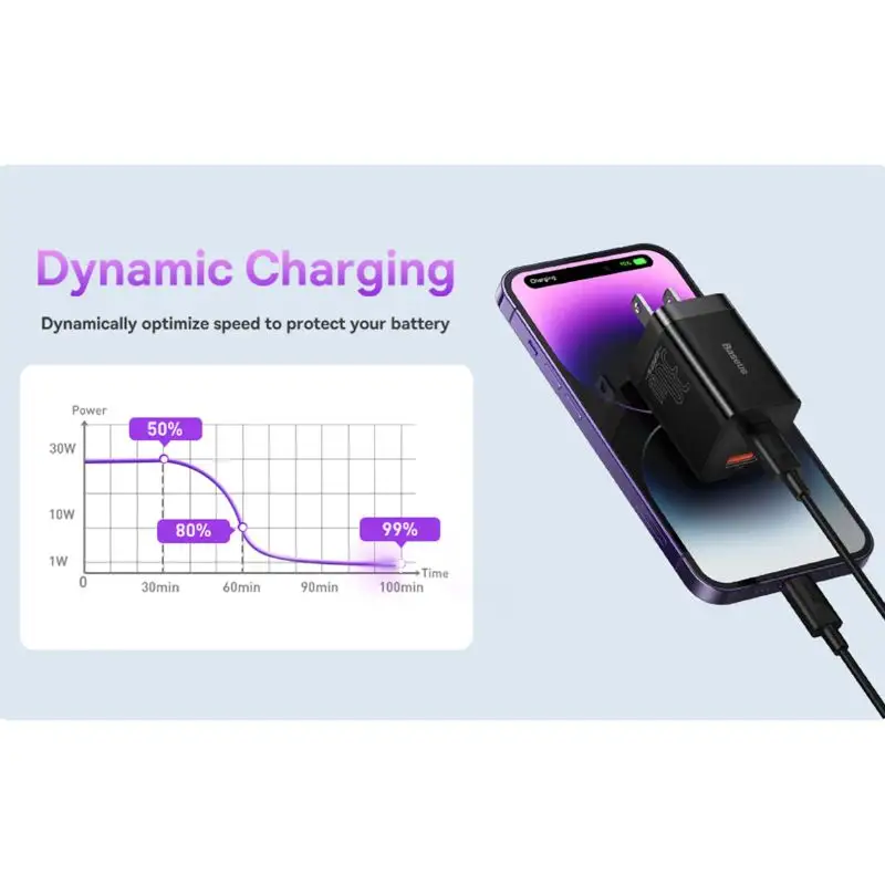 Super Si 30W Fast Charger is a dual port USB-C wall charger with a USB-C and USB-A port for simultaneous fast charging. The Type-C port could reach a max output of 30W when the USB-A idled. Itâs ultra-compact and generates less heat than regular chargers.