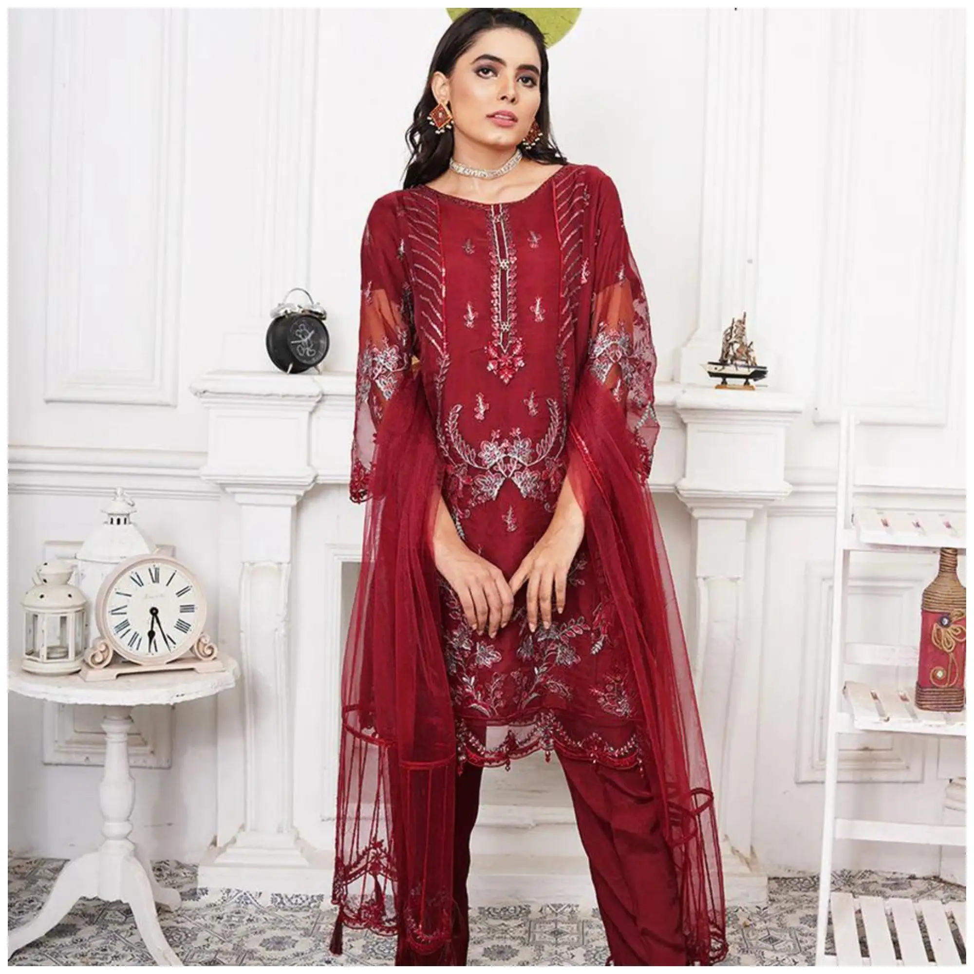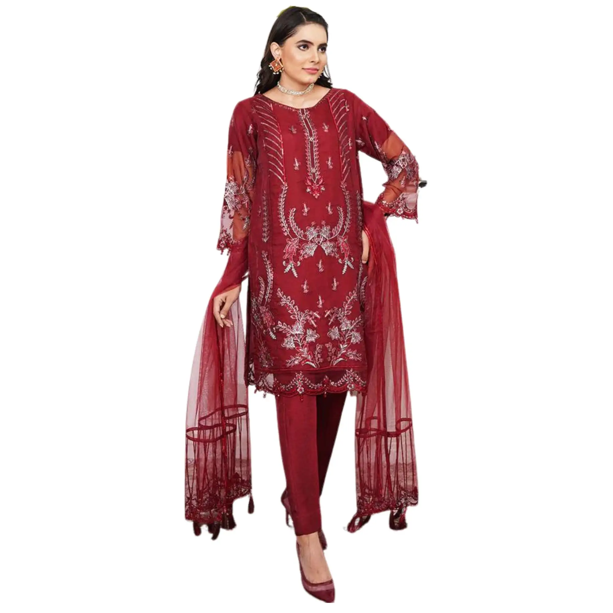 Bint al bilaad Party Wear Fancy Embroidered Suit Ready to Wear Dress for Women Stylish Event Readymade (3 PEICE) #BB-014