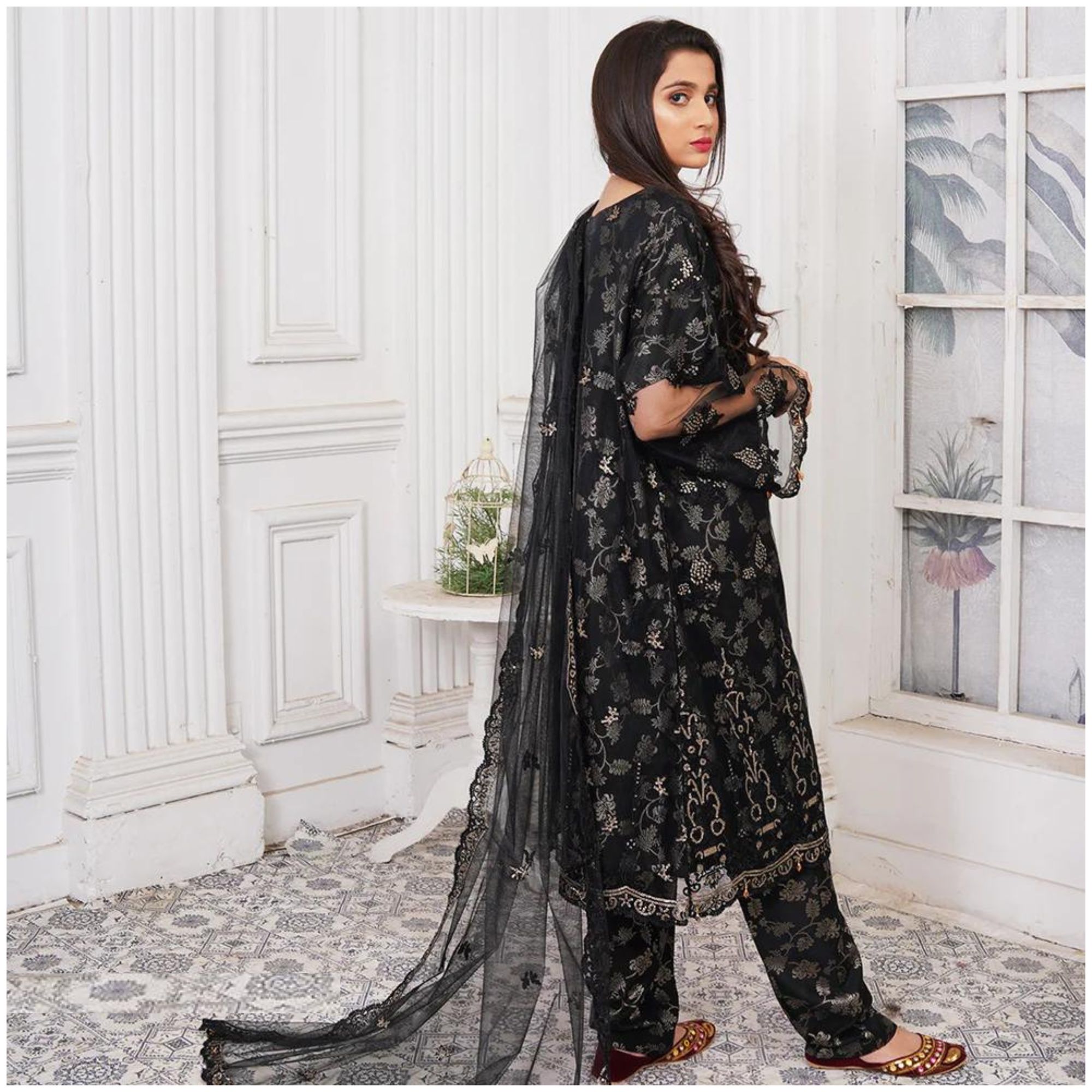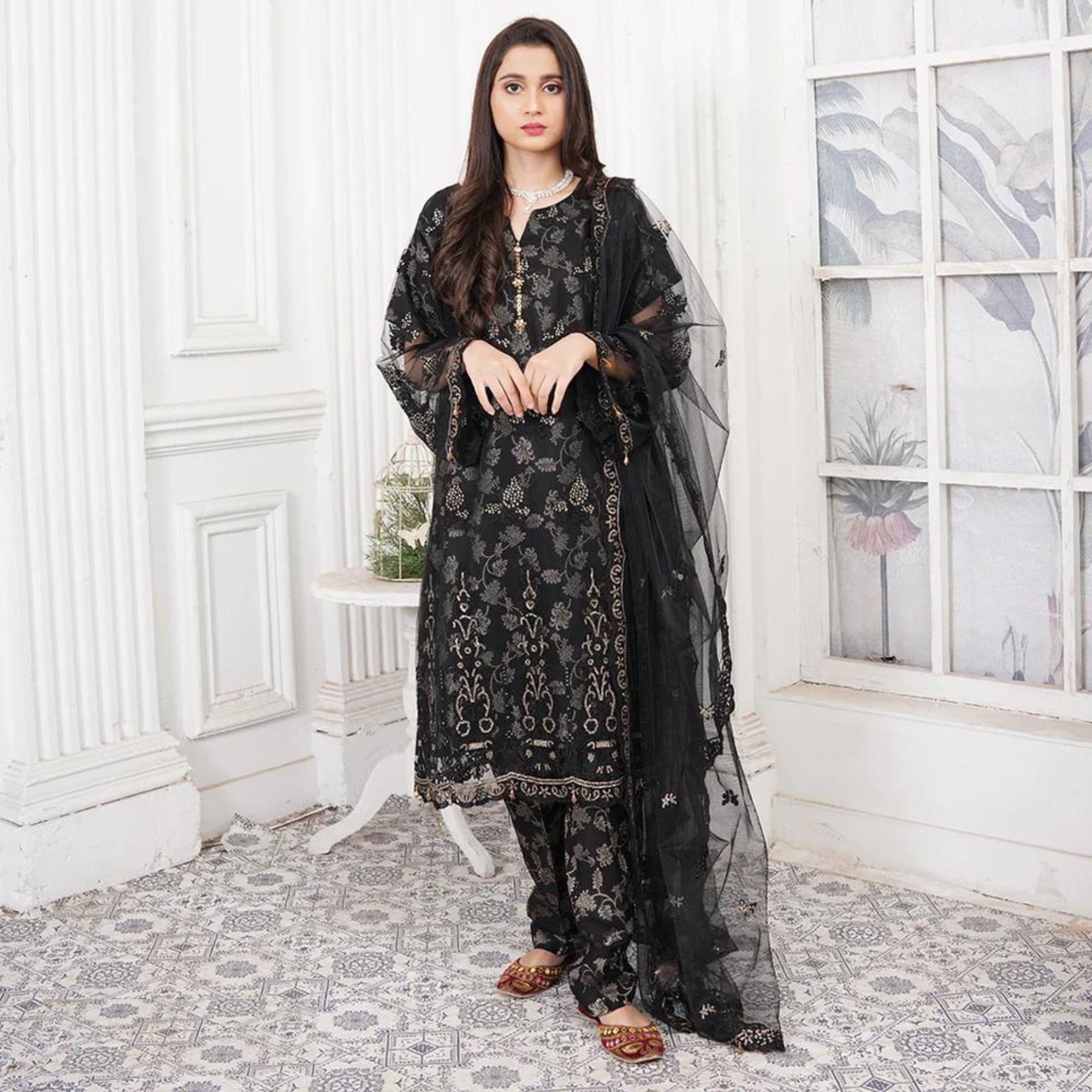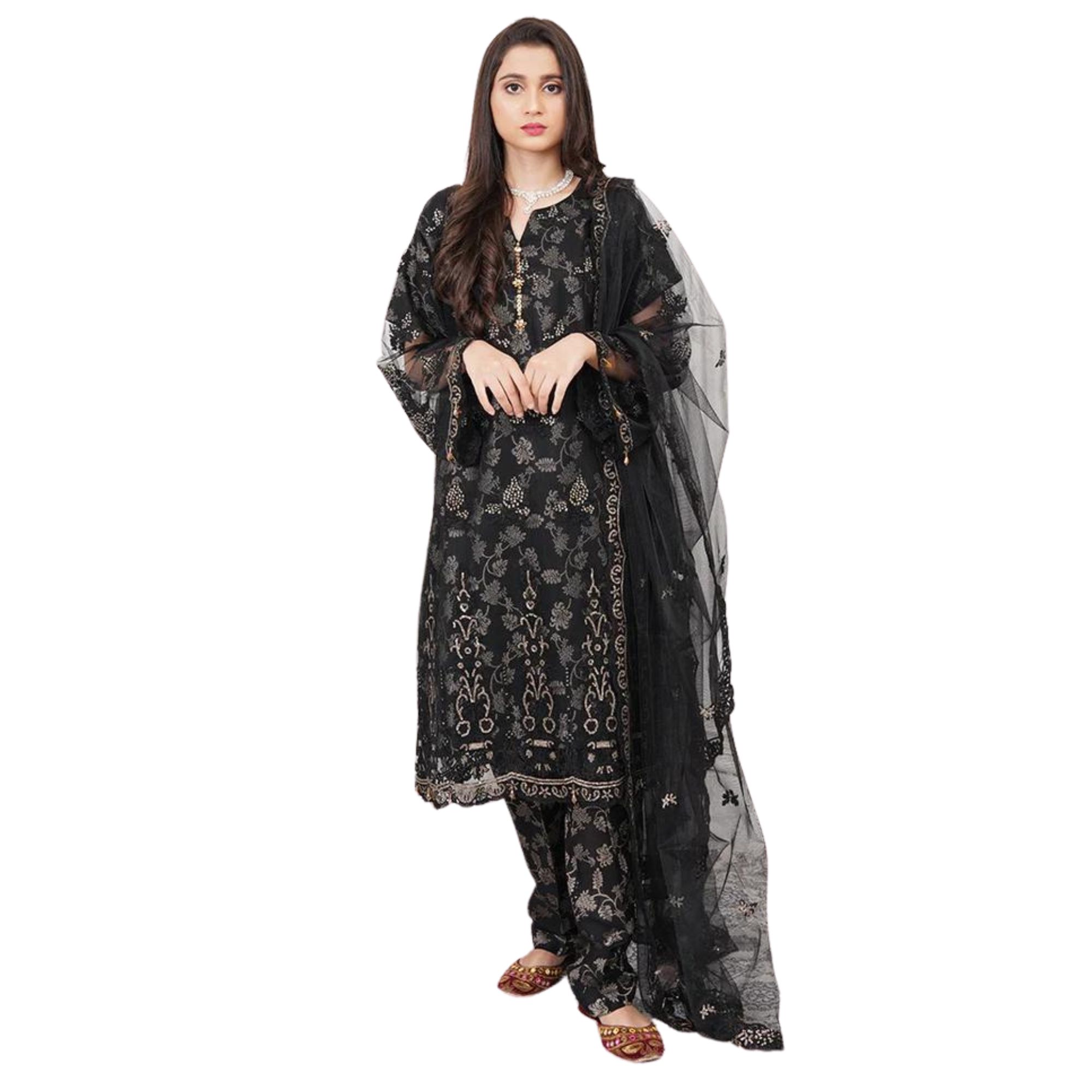 Bint al bilaad Party Wear Fancy Embroidered Suit Ready to Wear Dress for Women Stylish Event Readymade (3 PEICE) #BB-015