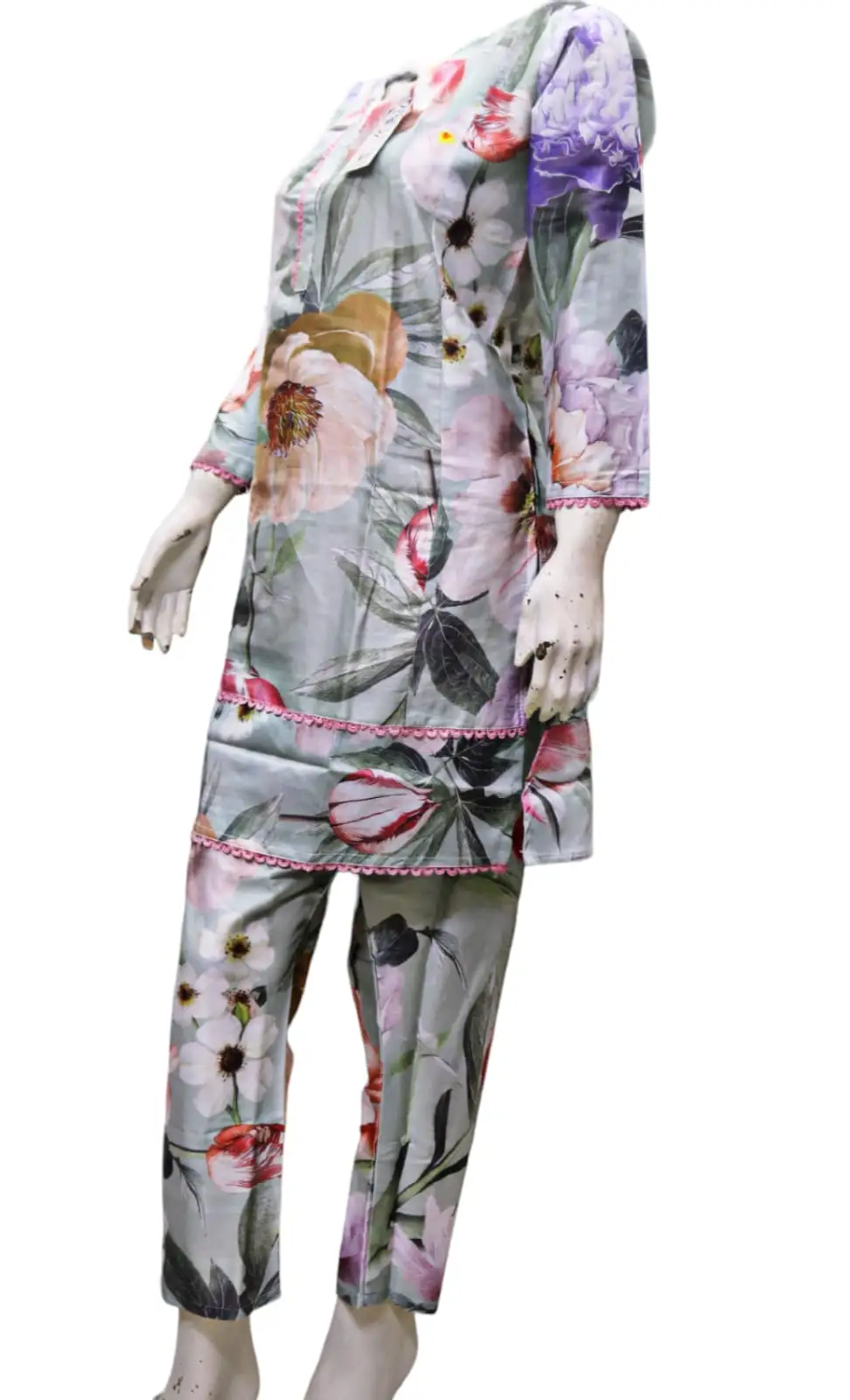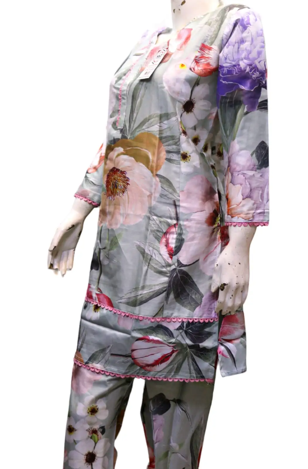 This Flower Printed Grey 2 Piece Swiss Cotton Suit is perfect for women and girls who want to look stylish and comfortable at the same time. Made from high-quality Swiss cotton, this suit is soft, breathable and durable. The flower print adds a touch of elegance to the grey color, making it perfect for any occasion. The suit is stitched and comes in two pieces, making it easy to wear and style. It is suitable for traditional events and can be paired with your favorite accessories to complete the look. Get ready to turn heads with this beautiful Flower Printed Grey 2 Piece Swiss Cotton Suit.