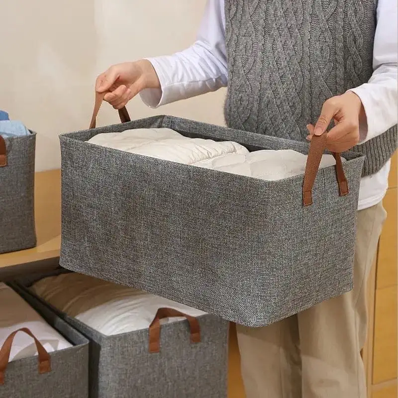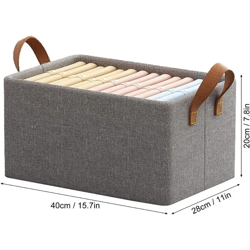 This foldable wardrobe organizer offer incredible versatility and can be used in various environments throughout your home. They are perfect for organizing shelves in your living room, bedroom, nursery or office. Use them to carefully store and categorize books, magazines, accessories, clothes, toys and more. These containers are also an excellent choice for open cabinet systems, providing an attractive storage solution for your folded clothes, bed linen and towels. It's made of top quality materials to ensure robustness and longevity. The reinforced metal frame provides excellent structural integrity, allowing these baskets to maintain their shape. It provides exceptional stability and resistance, ensuring that containers maintain their shape and endure daily use. Whether you're storing books, toys, clothes or any other household item, you can rely on these baskets to carry the weight and keep everything organized.