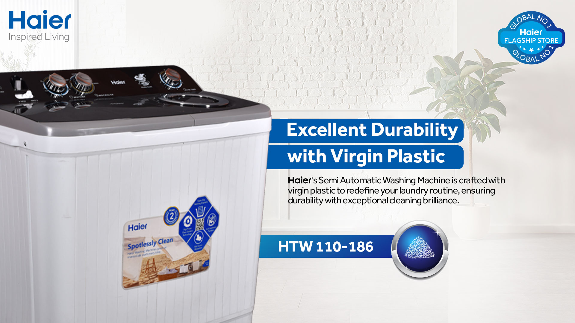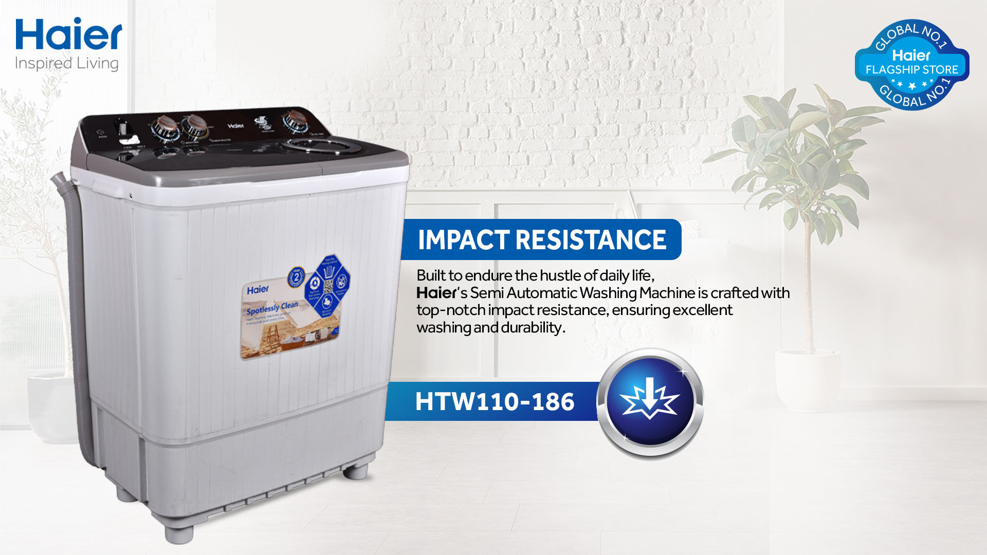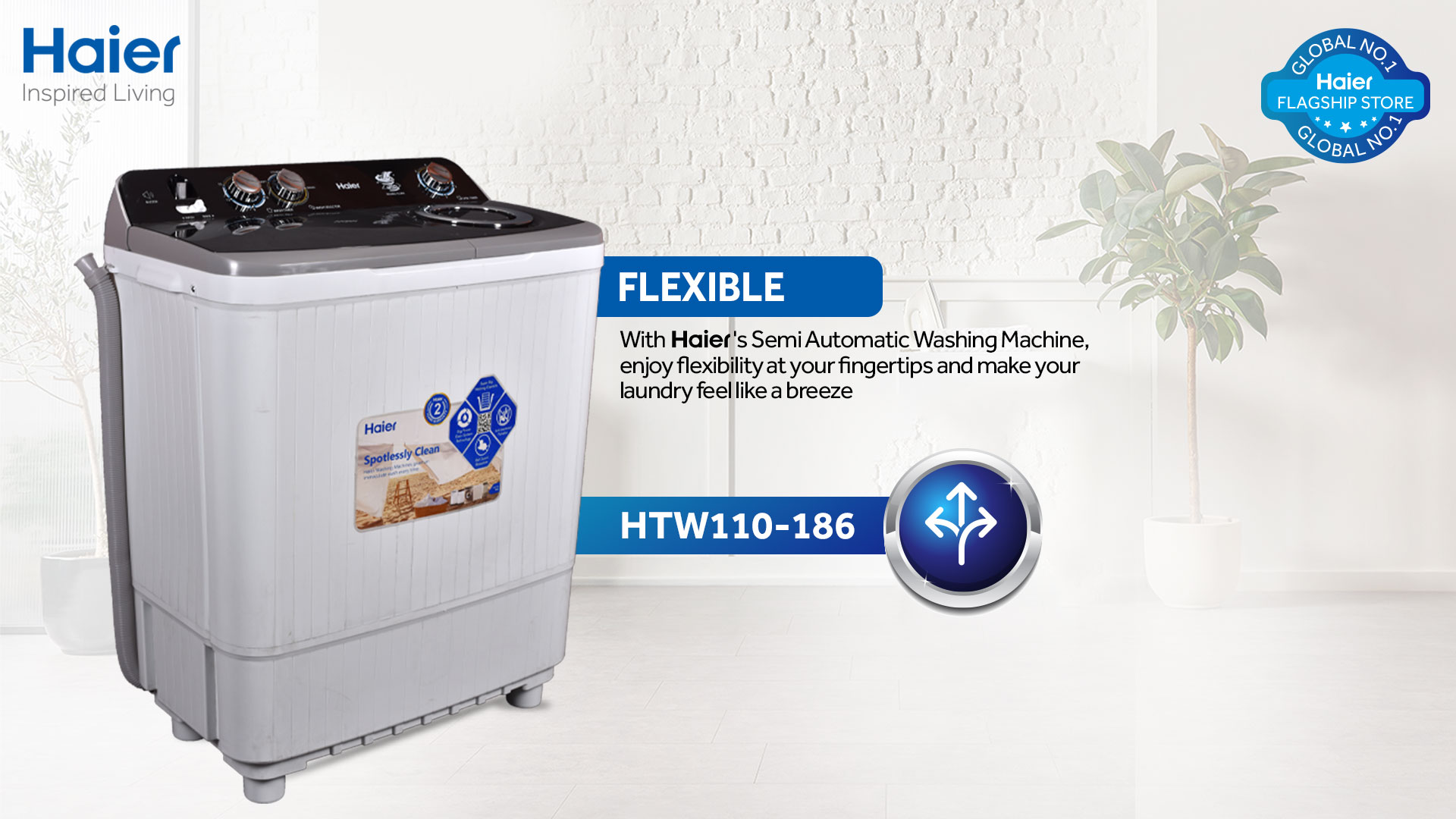 HTW110-186 twin tub has a powerful motor that eliminates all your worries for a longer period of time. The price of Haier 8KG washing machine HTW110-186 is so reasonable which everyone can easily afford it.