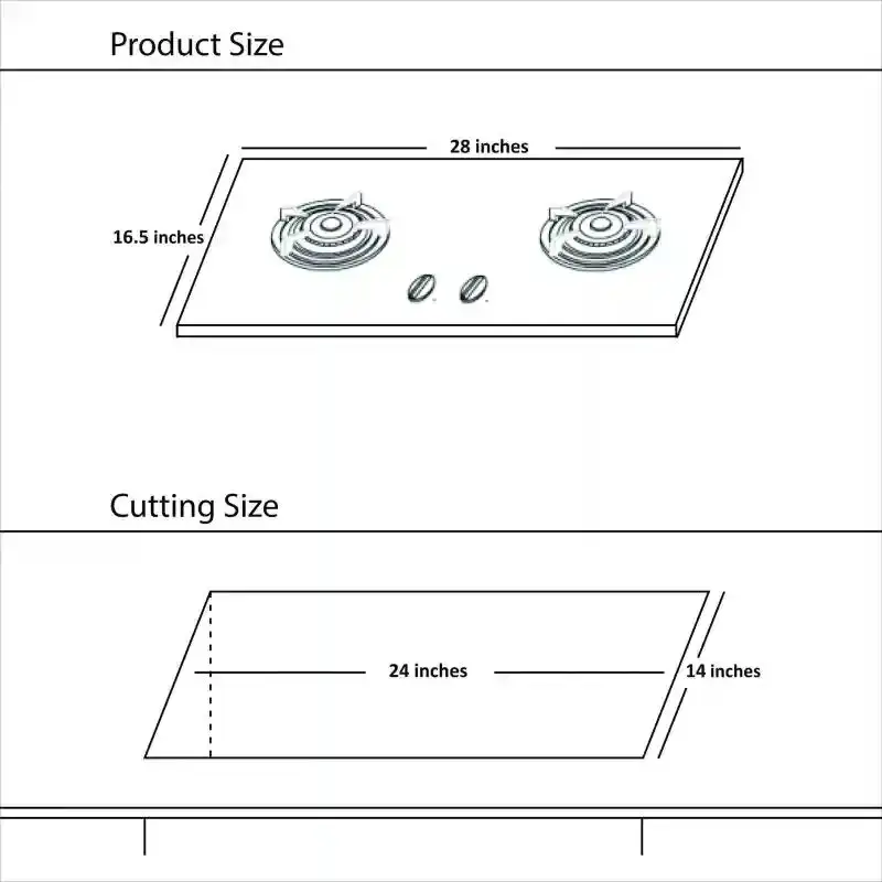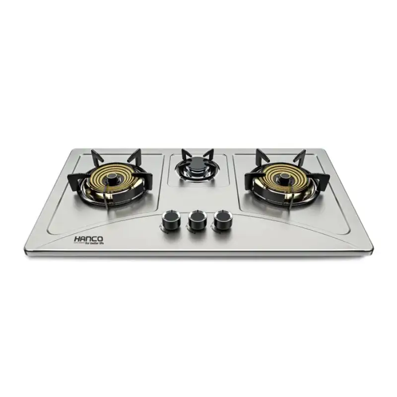 Stainless Steel Heavy & High Round Dyecast Coating Iron Grill Burners 2 x Brass Burners 1 x Semi Rapid Burner Metal Knob Flexible flame power Easy to clean Pulse Ignitor Gas Type: NG/LPG Product Size 710 x 400 mm Cutting Size (24 x 14 inch)