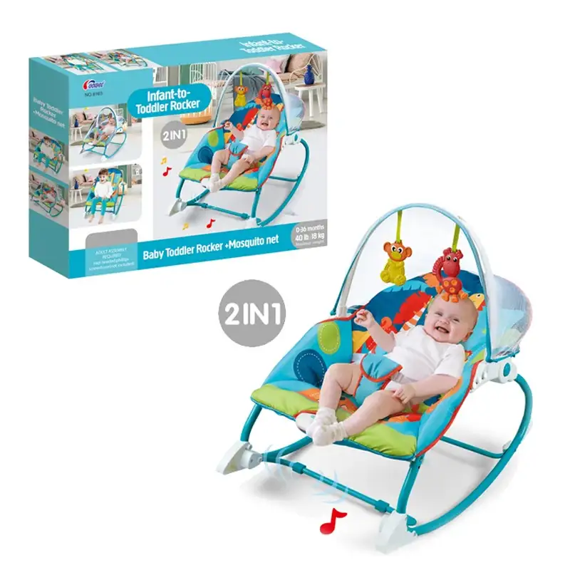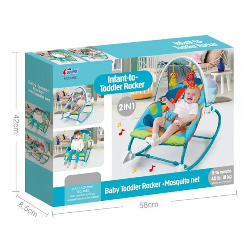 Fold-Out Kickstand for Feeding or NappingWith Calming VibrationsSleep ComfortablyPuzzleSafe MaterialsRich ColorsEasily convert to a toddler rockeru can use the rocker seat from infancy to the time when the kid starts sitting itself.