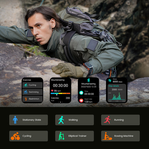 TANK M2 supports as many as 70 sports modes, including hiking, skiing, swimming, etc. Empowered by our all-new sporting algorithm, the smartwatch enables smart recognition and reminder of 6 sports â still, walking, running, cycling, elliptical and rower. The system can automatically sense current sports status without entering Sports Modes manually.