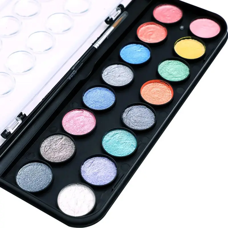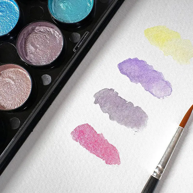 Each metallic watercolour pan in the set is formulated with high-quality pigments that offer rich, reflective colors. The metallic effect creates a stunning visual impact, making your artwork stand out with a touch of glamour and sophistication. These watercolours are perfect for adding highlights, accents, or creating entire pieces with a metallic sheen.