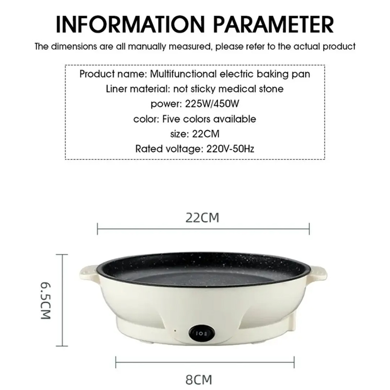 - ⢠Portable 22cm Non Stick Multifunction Electric Frying Pan