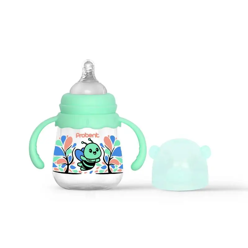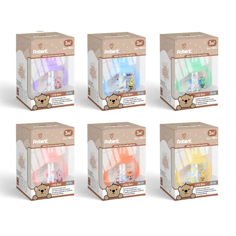 Introducing our premium baby bottle, designed with your little one's comfort and safety in mind. Say goodbye to colic troubles with our innovative anti-colic system, ensuring a happy feeding experience for your baby. Made from BPA-free materials, this bottle prioritizes your baby's health and well-being. Plus, our bottles are printed with food-grade ink and colors, giving you peace of mind that every sip is safe and secure. Choose our baby bottle for a blend of quality, safety, and style for your precious one.