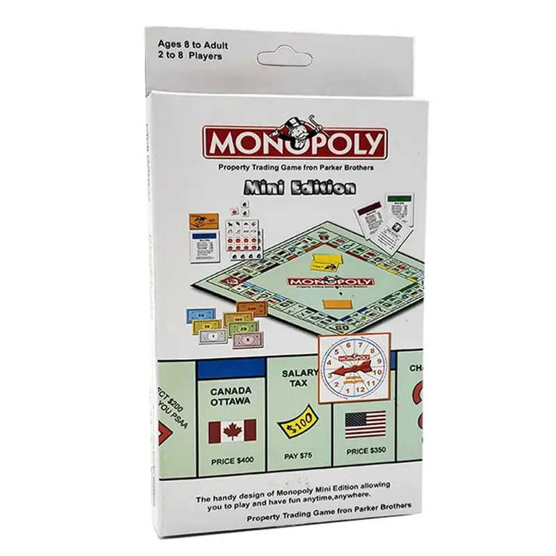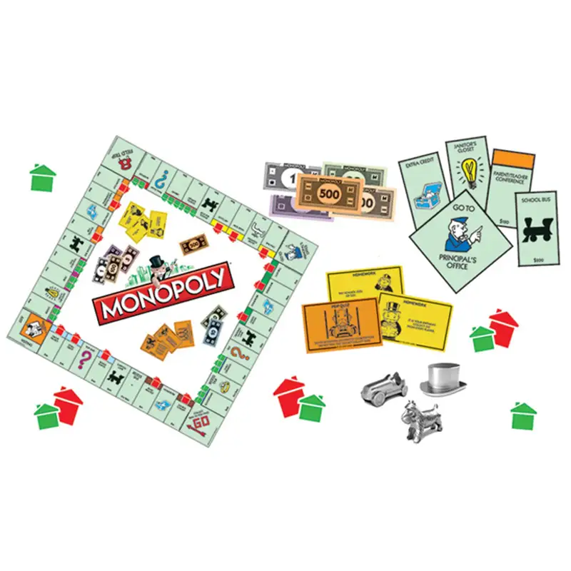 gameboard8 tokens28 Title deed cards16 Chance cards16 Community chest cards32 houses12 houses2 dicesMoney packInstruction leaflet