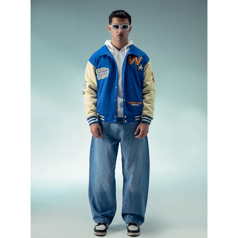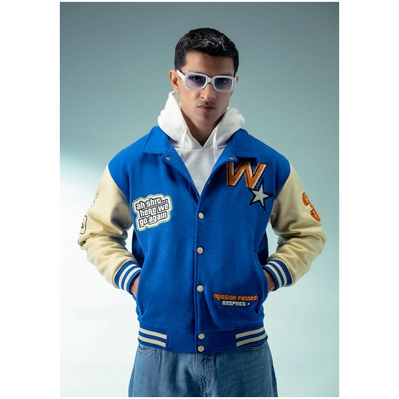 The SanAndreas Street Varsity Jacket combines classic varsity style with urban edge. Featuring a striking royal blue and off-white color scheme, this unisex jacket is adorned with bold Wasted and SanAndreas chenille embroidery for a rebellious touch. The shirt collar and sleek design make it a versatile, stylish choice for those who want to stand out in any setting.