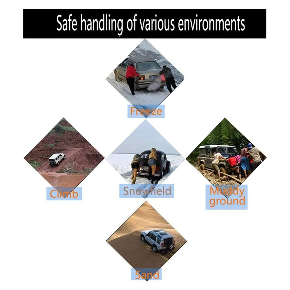 Textured straps are designed to get you safely unstuck from the snow, mud or sand, avoid dry pavement or flat ground uncovered by snow, mud or sand.