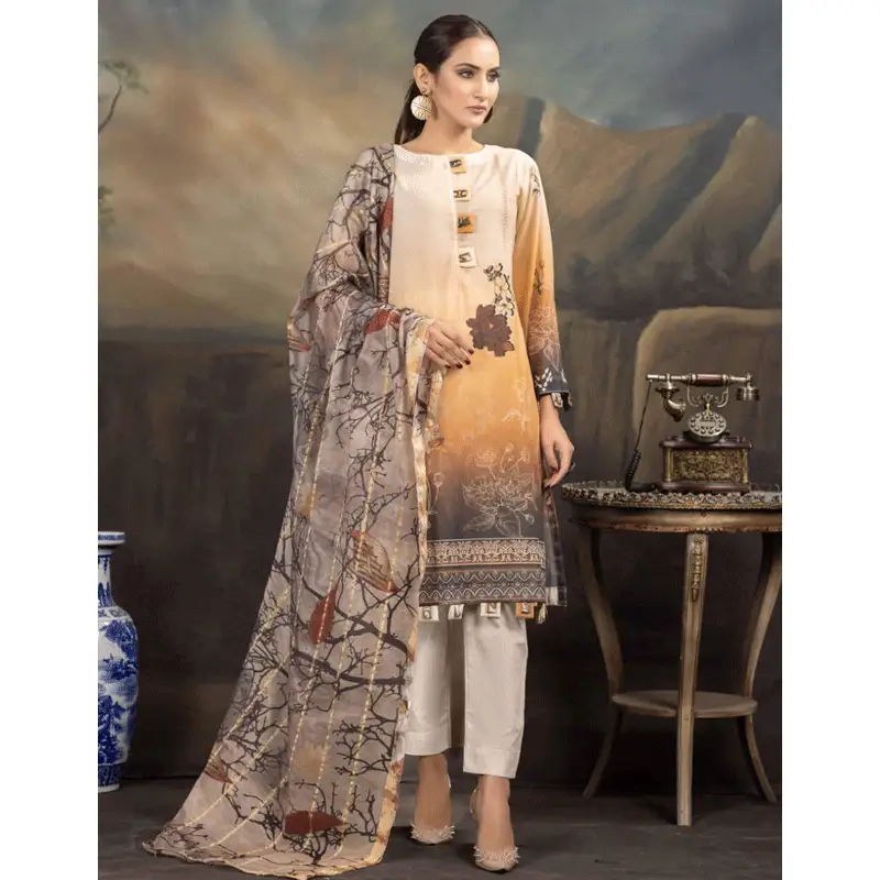 Swiss lawn Suit with Diamond Slub Dupatta and Plain Cotton trouser