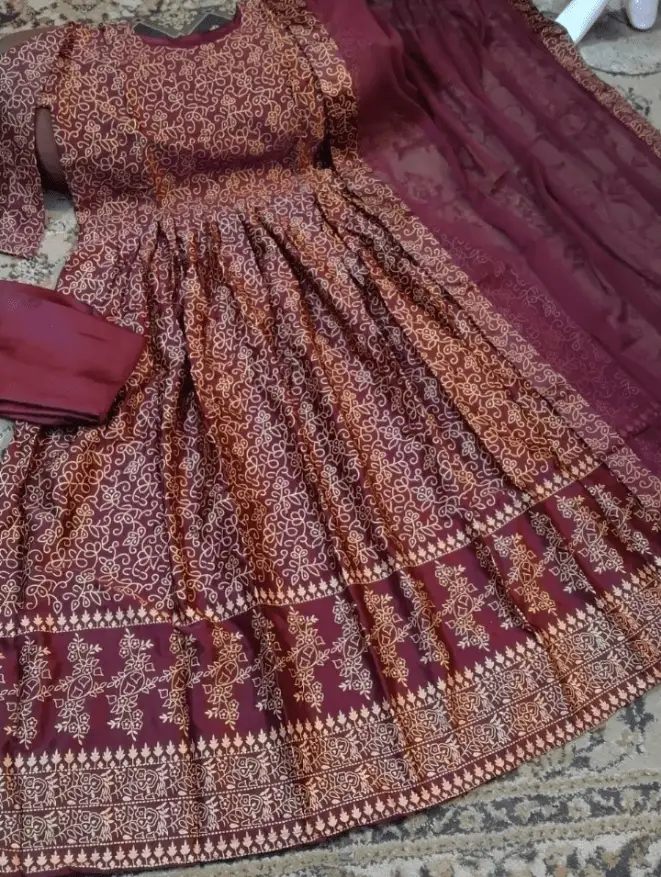 Heavy Printed Maxi With Printed Border Dupatta 3Pcs Size Mesurement Chest Size 20 / 21 Maxi Length 52 Maxi Ghair 100 Maxi Stuff Shamose Silk Trouser Length 37 Stuff Shamose Silk Printed Dupatta Size 2.5 Yards Stuff Chiffon Front back full printed