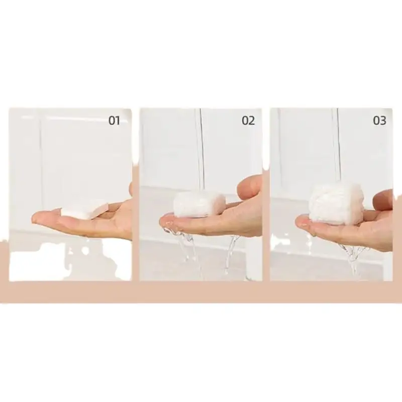 Instant Absorption: Expand into soft and durable towels when exposed to water, ensuring immediate usability.