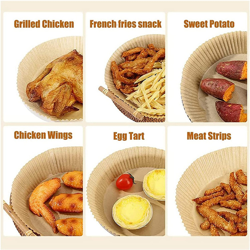 [Keep Your Air Fryer Clean] - These disposable paper liners can effectively keep food residue away from fryer and make it as clean as unused, saving time and effort. These paper liners are must have if you hate cleaning after baking.