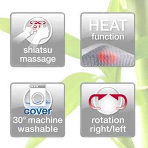 - 4 rotating Shiatsu massage heads rotating in pairs in opposite directions