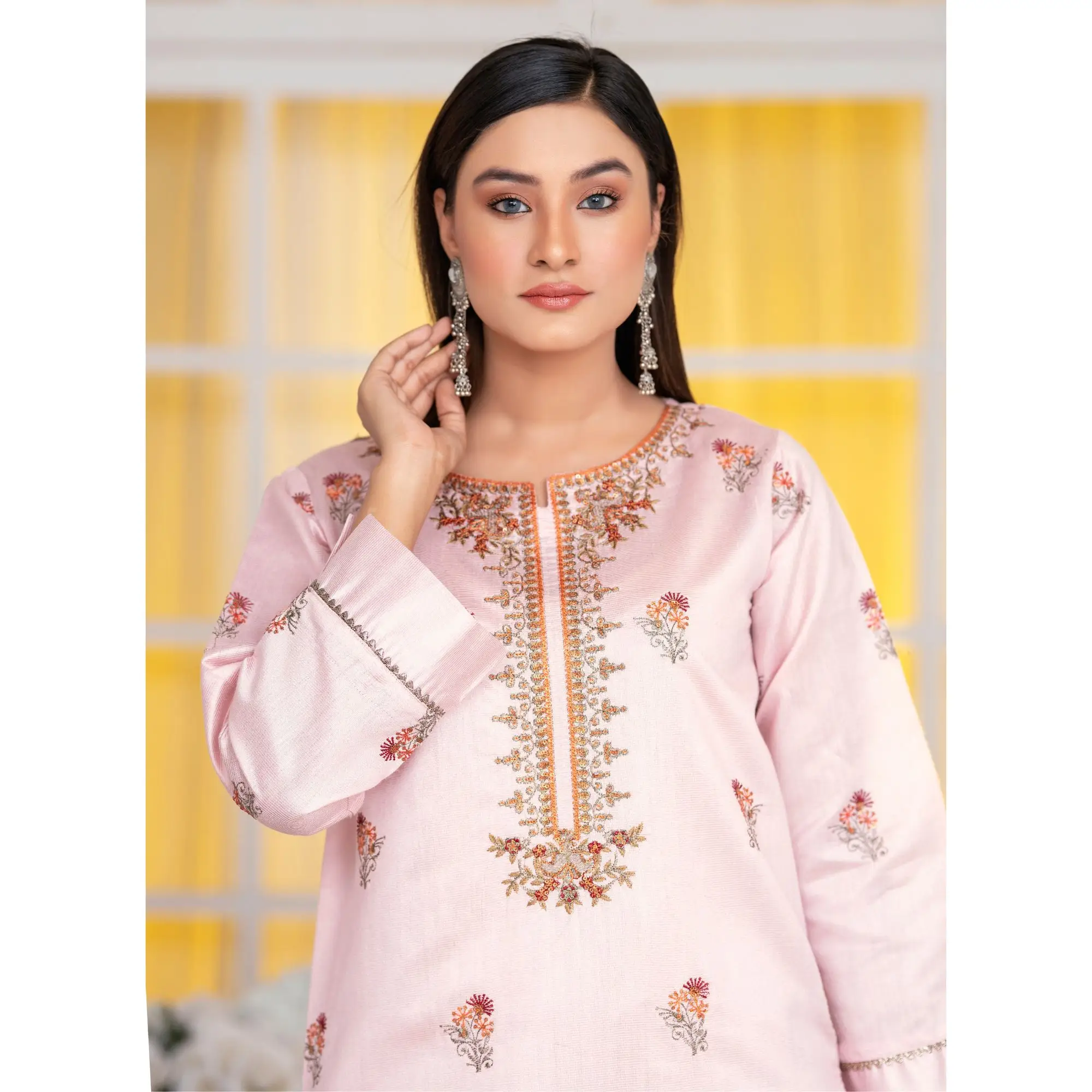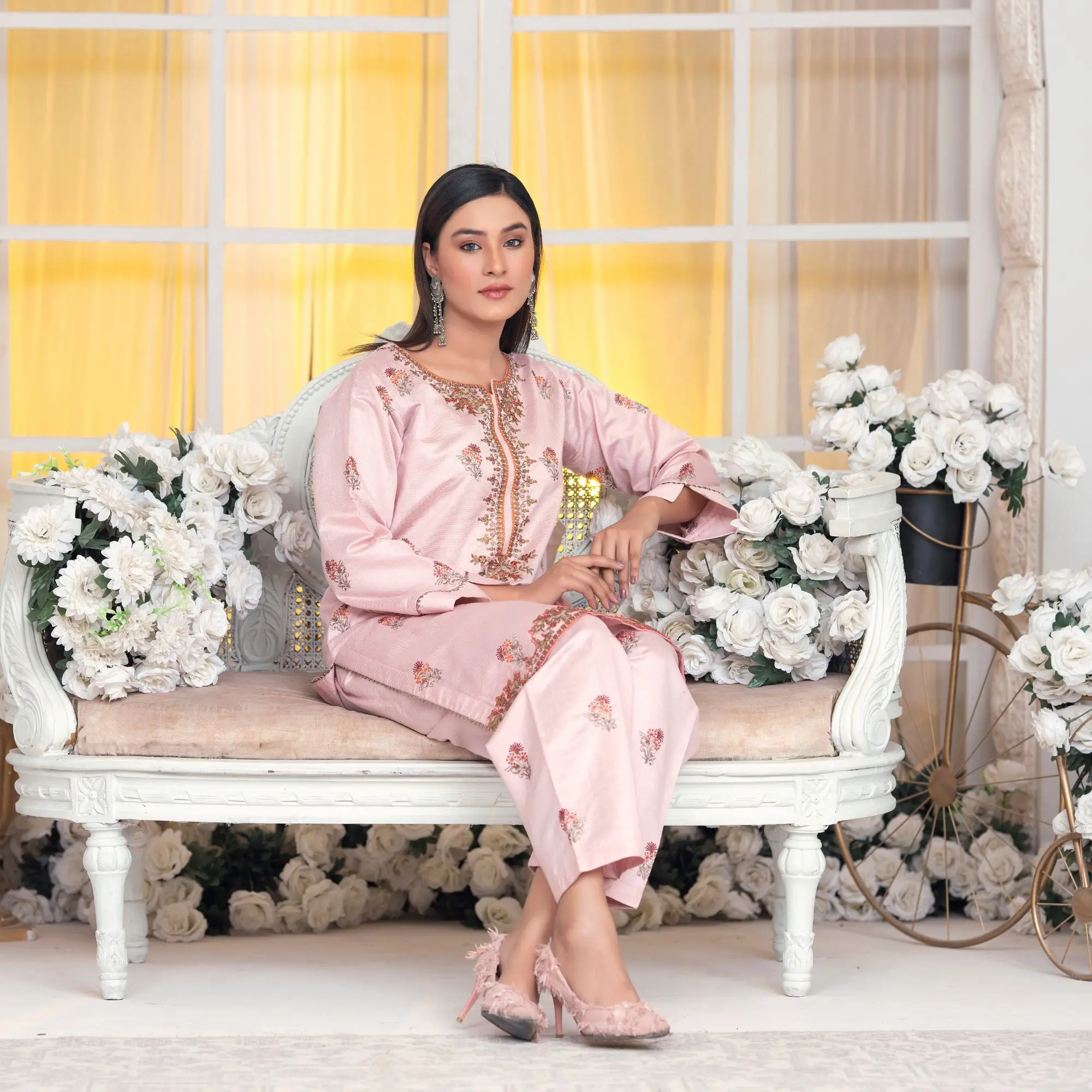 Bint Al Bilaad Embroidered Suit Ready to Wear Embroidered Khadi Viscose fabric Shirt Trouser (2 PIECE) #BB-001