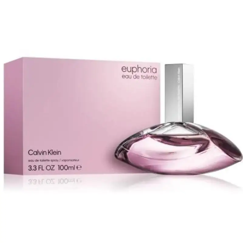 Launch year: 2005. Top notes: Pomegranate, Persimmon, "Lush Green Accord". Heart notes: Lotus Blossom, Champaca Flower, Black Orchid. Base notes: Liquid Amber, Black Violet, Cream Accord, Mahogany Wood. Design house: Calvin Klein. Scent name: Euphoria. Gender: Ladies. Category: Perfume. SubType: EDT Spray. Size: 3.4 oz. Barcode: 3616304248221. Calvin Klein Ladies Euphoria EDT Spray 3.4 oz Fragrances 3616304248221.