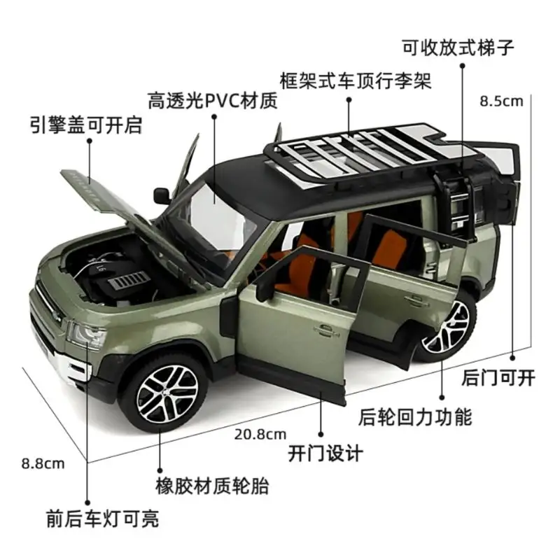 â Realistic exterior with accurate grille, roof rails, and spare tire.