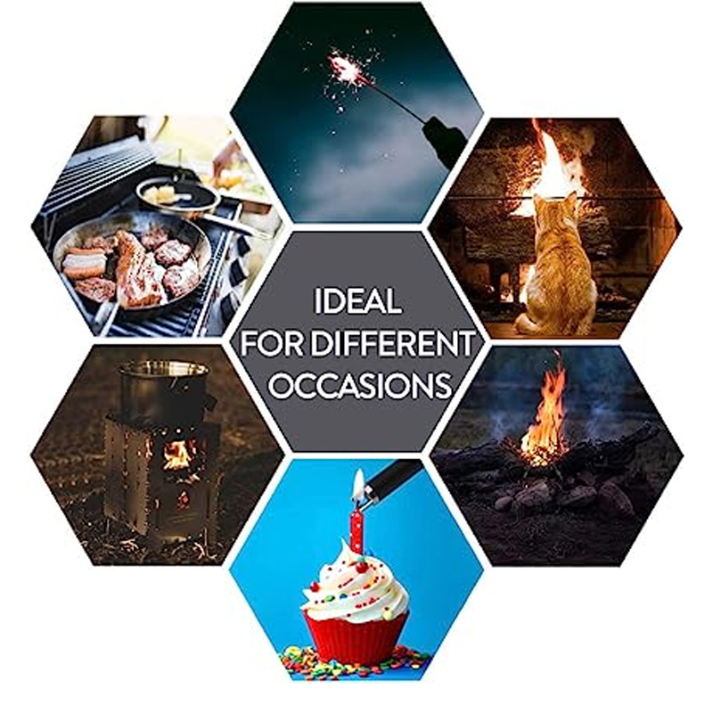 3.Suitable for various occasions: Long neck, suitable for jar candle lanterns, gas stoves, hot barbecues and so on without fear of burn.Arc lighter also can be a utility lighter, cigarette lighter, korek cerutu.Suitable for lanterns, churches, weddings, birthdays, candles, stoves, fireplaces