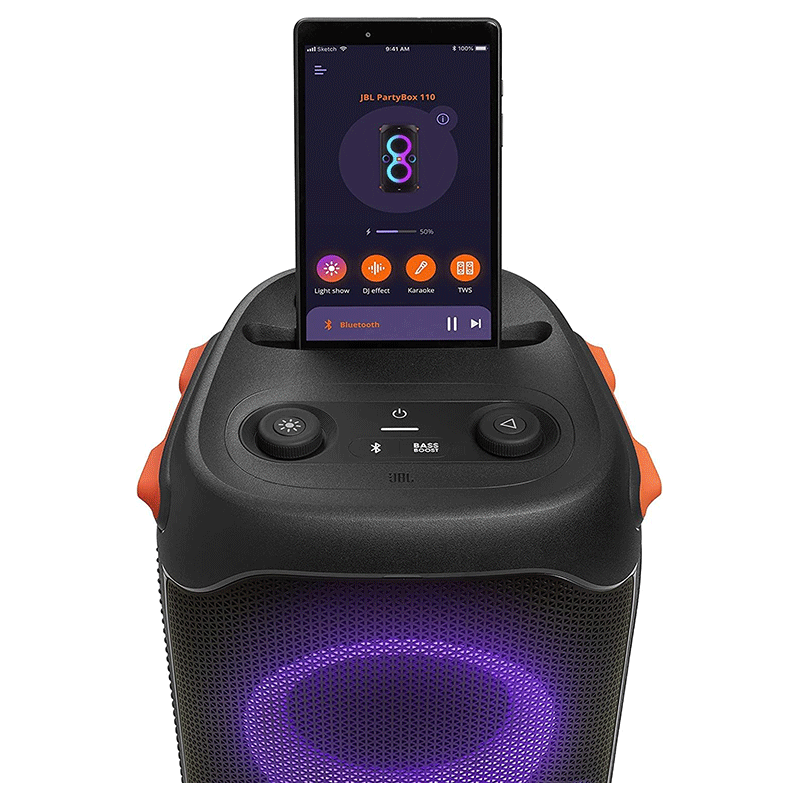 POWERFUL JBL ORIGINAL PRO SOUND: Whether youââ¬â¢re at home or outdoors, the JBL Party Box 110 makes your music amazing with two levels of deep, adjustable bass and 160W powerful JBL Signature Sound.