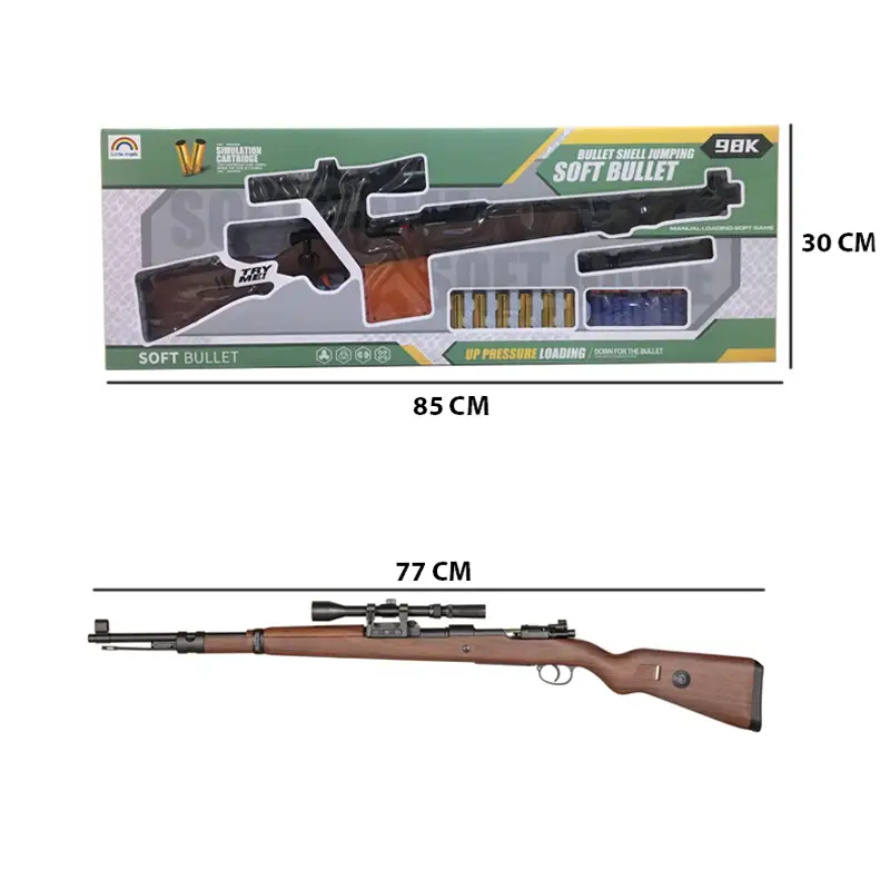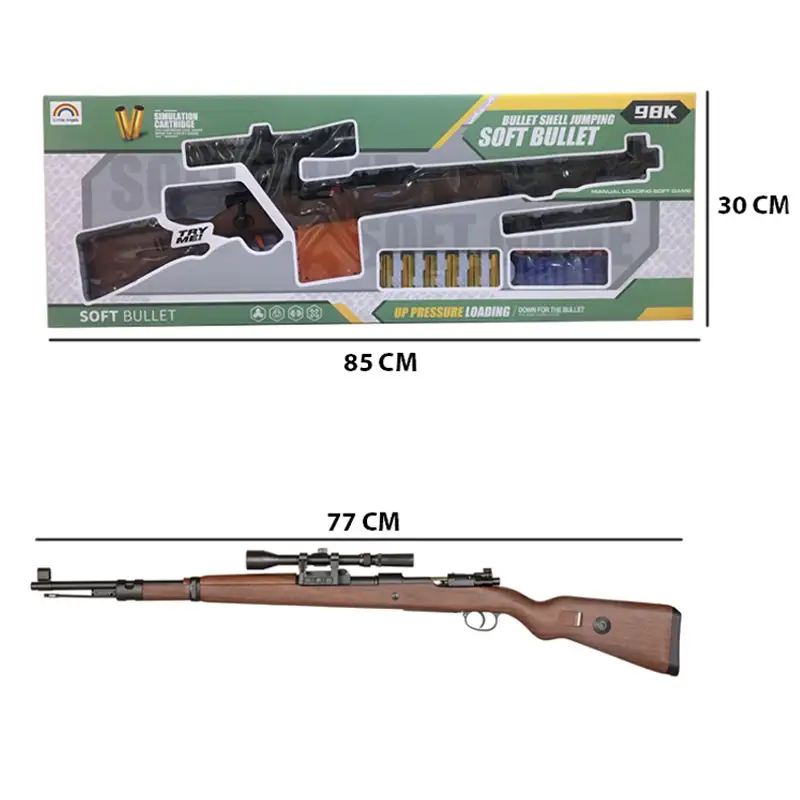 Feel Closer To The Real Gun. Classic Push-Pull Loading, Which Perfectly Restores the Sense of Loading Of Real Rifles, Shell Ejection When Shooting. It is Suitable For Fighting in the Wild, It's a Great Toy For Relatives and Friends to Interact. Safe Fighting, This Toy Gun Can Fire Soft Darts, But Don't Shoot at The Person's Head and Eyes. There are No Tools Required, Just Follow The Pictures On the Box to Easily Complete the Assembly and Start the Battle.