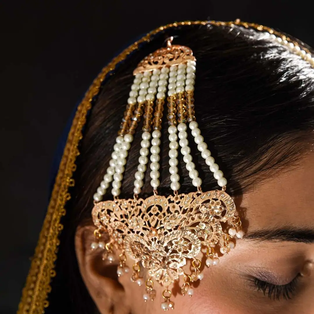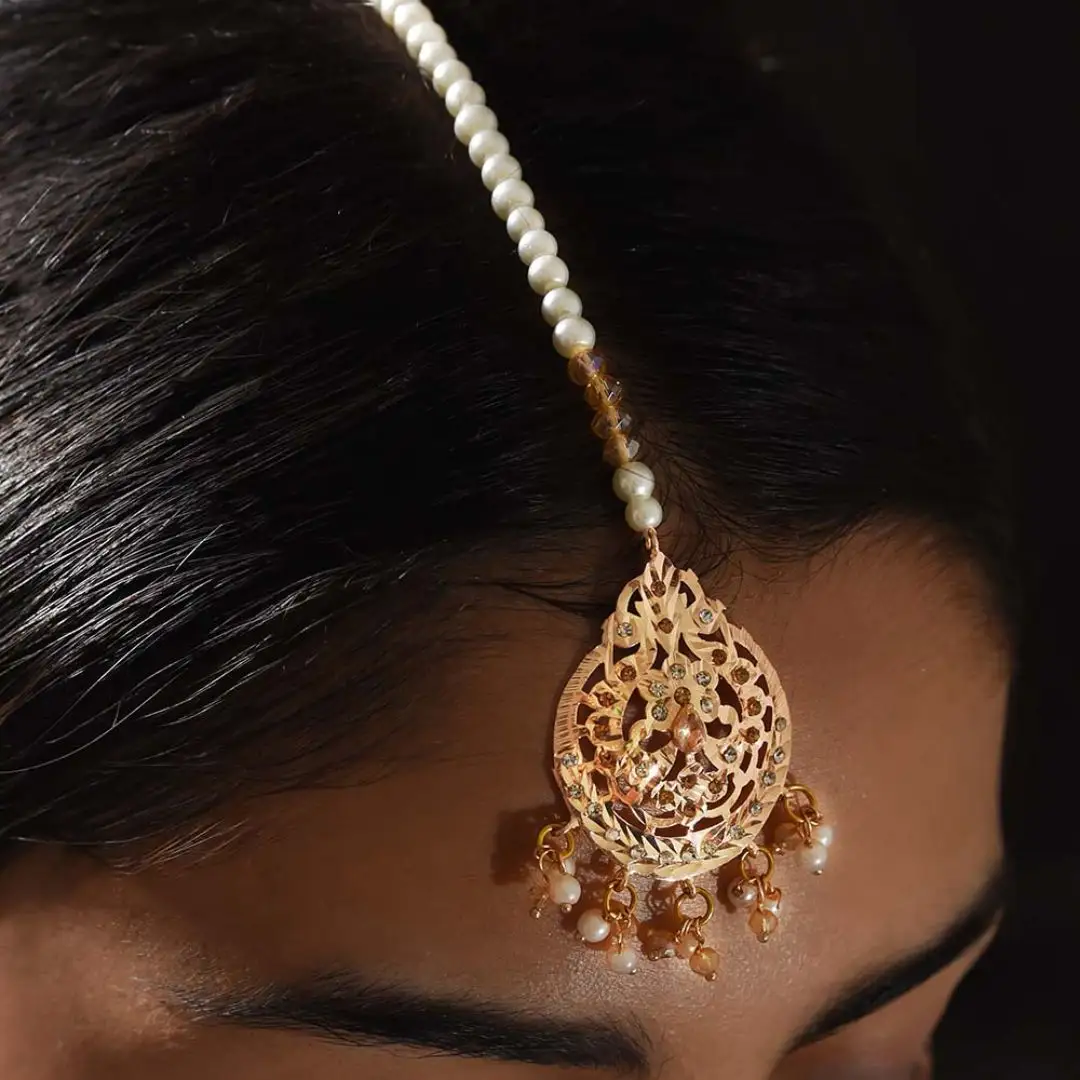 | A Kaira Gold Set is a 21k Gold Platted necklace,typically featuring multiple layers of pearls and crystals often complemented by intricate gold work.This regal piece is known for its grandeur and is often worn on special occasions, weddings, or cultural events, adding a touch of grace and opulence. |