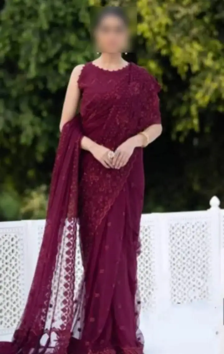 â¢Heavy Embriodered Chiffon Fall & Sleeves