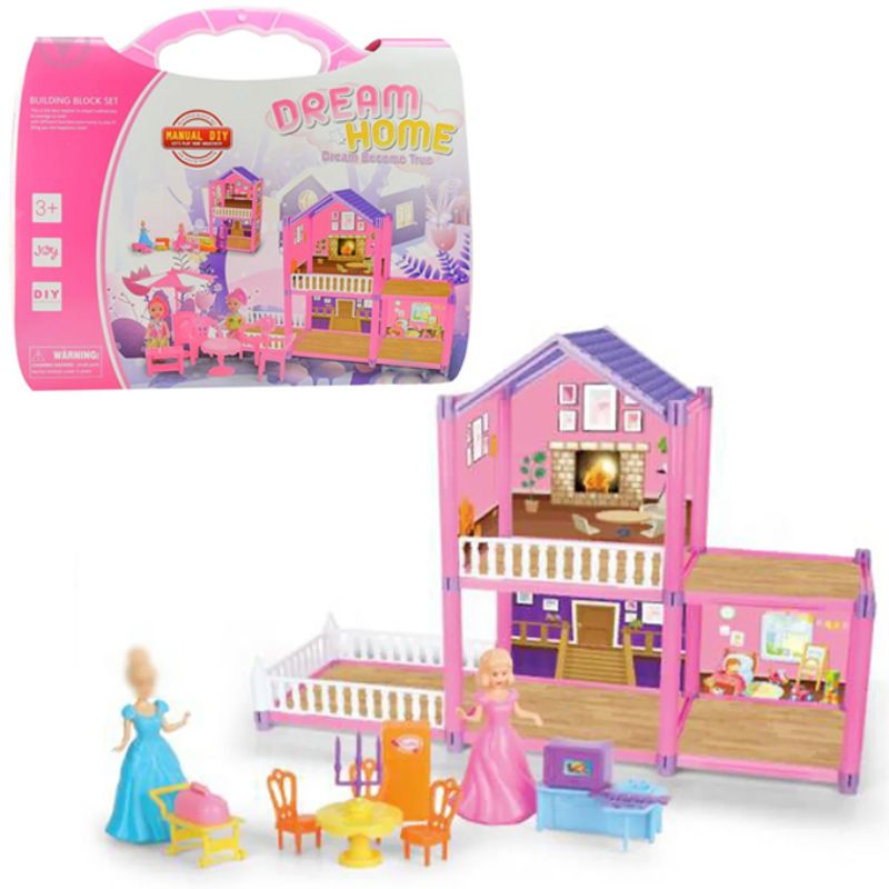 - The set includes a comprehensive collection of 75 pieces, encompassing plastic dolls, plastic furniture, and building blocks, providing everything needed to create a dream doll house.