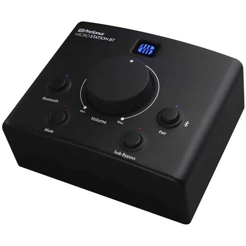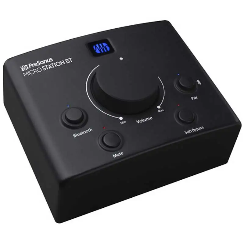 PreSonus娉 MicroStation BT is the ultimate solution for anyone who wants to add Bluetooth connectivity to a pair of studio or media reference monitors or other powered speakers. Compact, convenient and stylish, the MicroStation BT also makes it easy to add a subwoofer to create a 2.1 listening environment while putting the overall system-level control right under your fingertips.