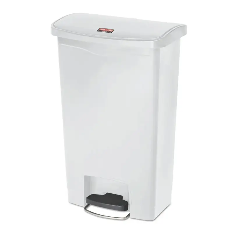 This step-on waste container provides sanitary, hands-free disposal of waste so patrons donââ¬â¢t have to touch the unit when disposing of trash. The commercial-grade foot pedal located on the front-facing side on the waste receptacle withstands heavy use, while the increased foot pedal clearance makes it easier to access and use. The internal hinge design of this waste receptacle protects nearby walls and furniture from damage and ensures that users wonââ¬â¢t need to touch the lid itself to close the container. A quiet lid-closure is specially-designed to reduce noise levels in your facility.
