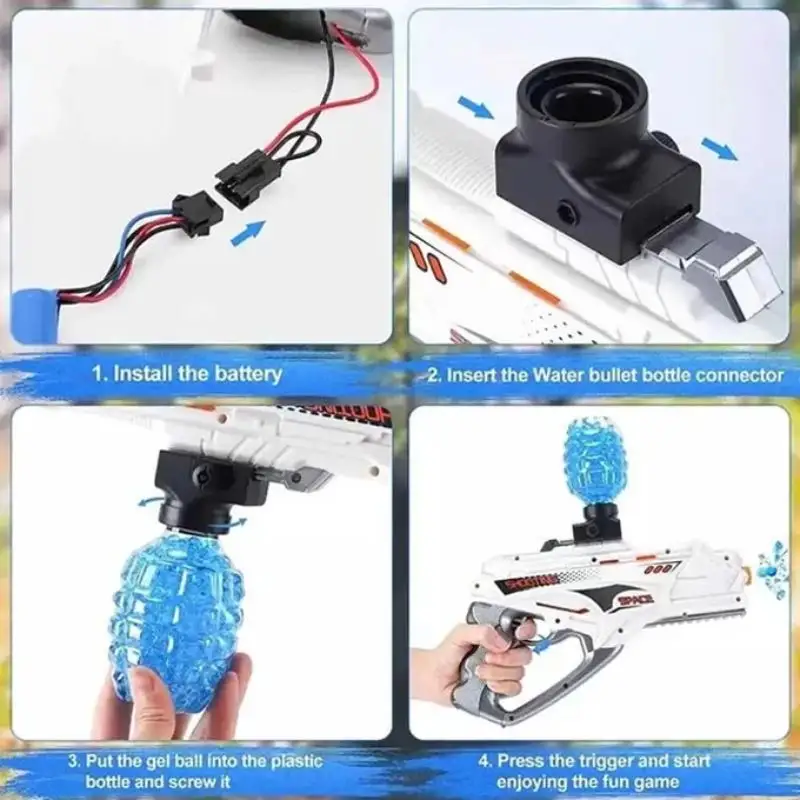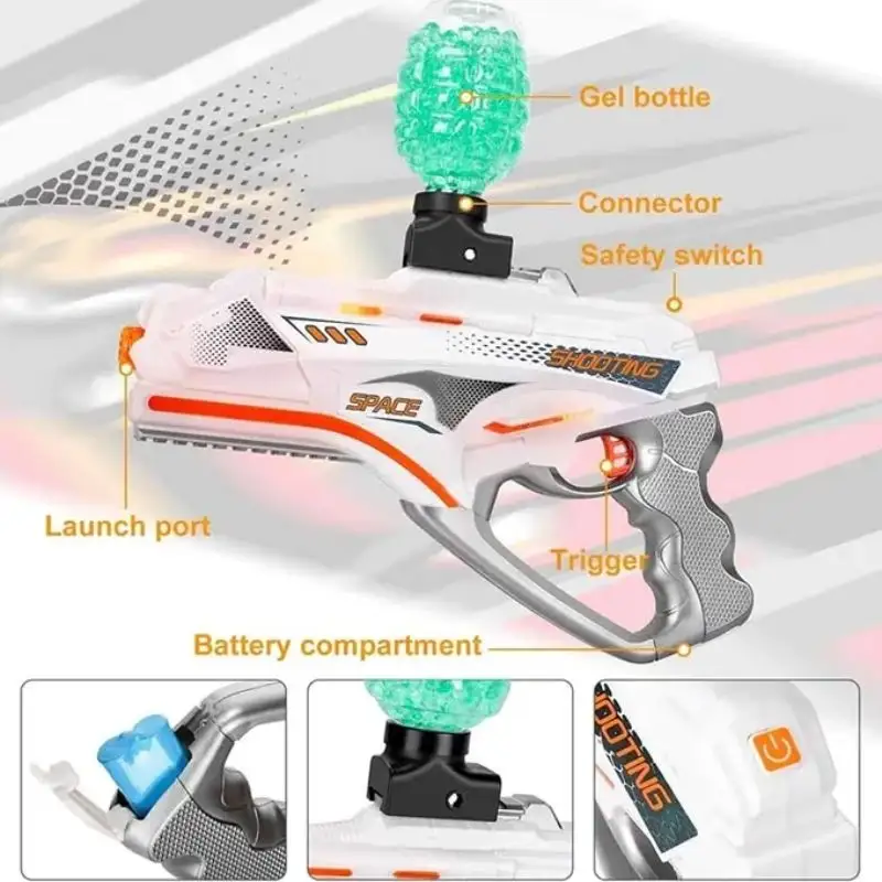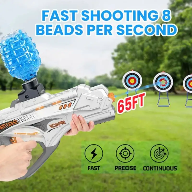 The first choice for outdoor games: The water-filled biodegradable gel ball used in this splash ball launcher will burst into lots of small fragments upon impact and completely disappear after drying. It is not only environmentally friendly, but also requires no cleaning. Let you enjoy fun outdoor games REAL & FUN â Gel ball toygun shooting speed is very fast. You can shoot up to 300 gel balls per minute. It also has a very long firing range, measuring approximately. Fast speed and long shooting range can give you a very real and fun experience. Ideal party gift and all kinds of festivals (Easter, Christmas, Halloween, Thanksgiving, New Year) and great birthday gift for kids Suitable places, the gel ball launcher is suitable for backyards, jungles, hills and flat terrain. Some safe abandoned factories are also ideal places. It involves physical exercise, aim skills, observation, and endurance. This is a great way to entertain, especially for group games.