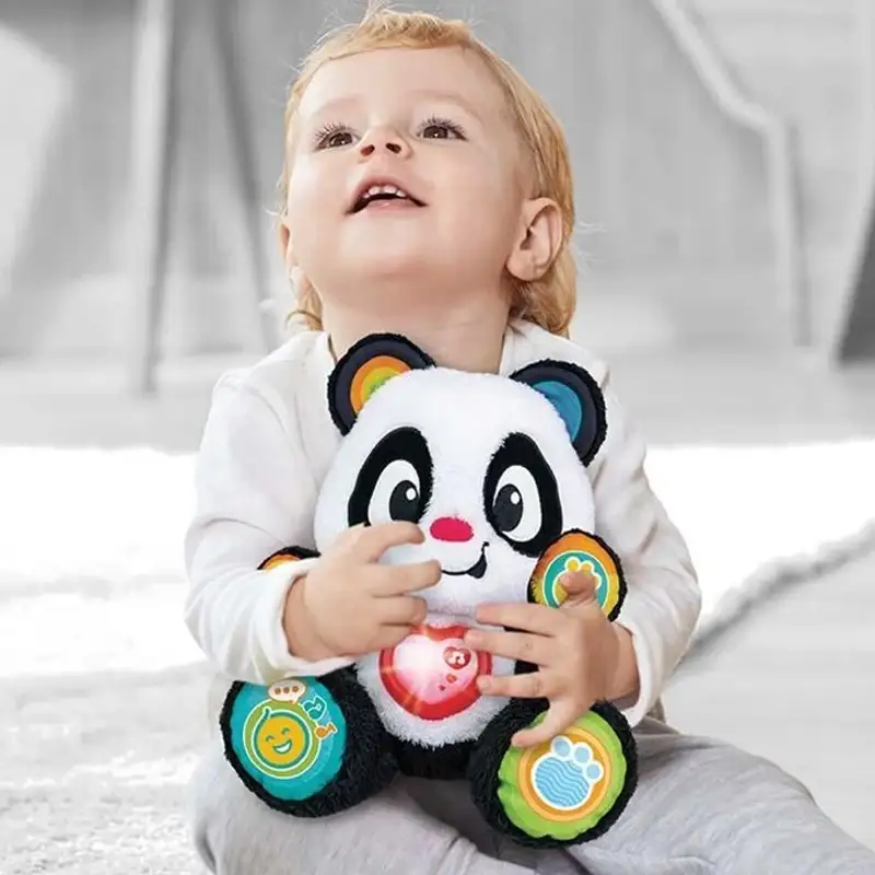 - Soft, cuddly panda pal with music activities