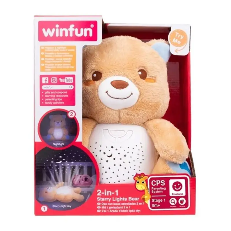 Soothe your little one with the Win-fun 2-in-1 Starry Lights Bear Toy